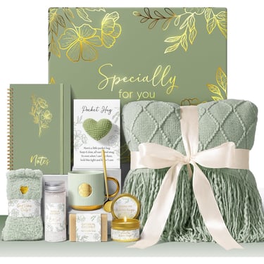 reminder to stop. This gift basket (complete with a mug, cozy socks, and a candle) is the perfect gesture for when life has been relentlessly demanding—a "hug in a box".